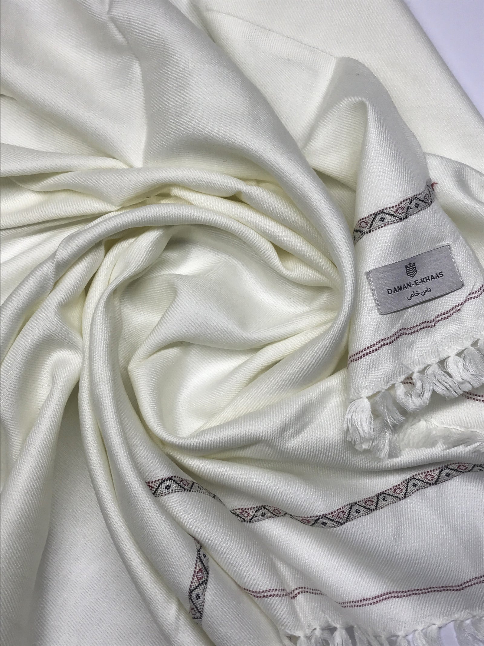 Elegant Off-White Wool Shawl – Single Border Design